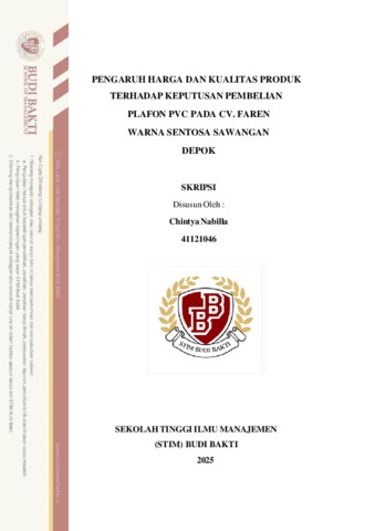 Nabilla, Chintya (2025) Pengaruh Harga dan Kualitas Produk terhadap Keputusan Pembelian Plafon PVC pada CV. Faren Warna Sentosa Sawangan Depok. Other thesis, Sekolah Tinggi Ilmu Manajemen Budi Bakti.